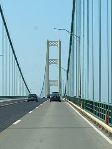It was finally time to cross the Mackinac Bridge into the U.P. Despite the holiday weekend, the bridge traffic appeared to be fairly light, and there was only a slight delay at the toll plaza once we reached the opposite side. Fortunately, the weather was good, and there was no wind, which made the drive easy.