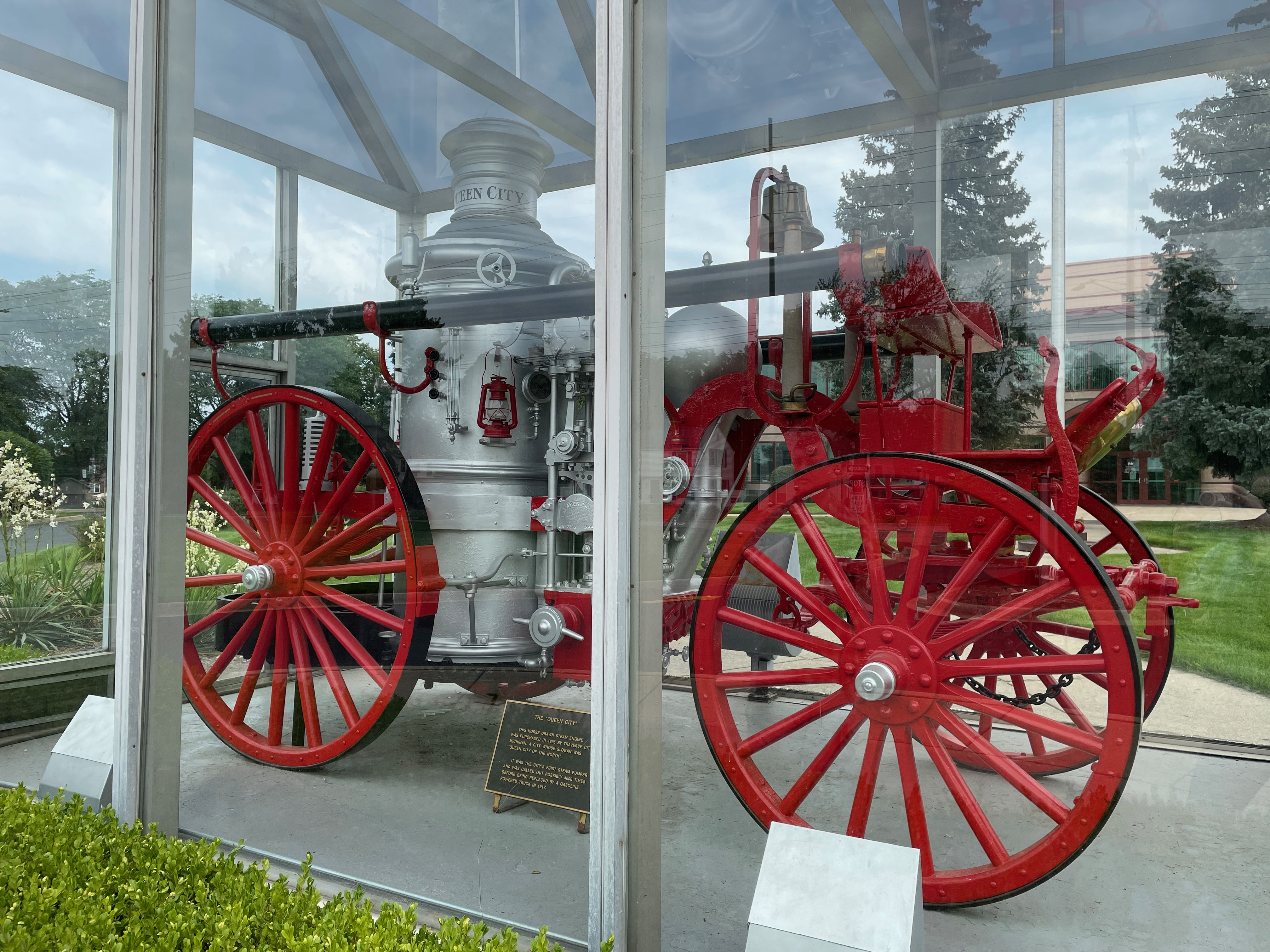 We used virtual geocaches to take us on a quick tour of the area surrounding the Capitol on our way out of town. Stops included a few hidden murals, an old train station (the former Clara’s Lansing Station), and The Queen City (steam pumper fire engine).