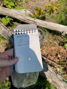 The next big, planned stop was hours later in Kalkaska County. One of four remaining geocaches from August 2000 still in play. We did our diligence and knew that coming from the south, as the GPS would typically route you, was not ideal due to the distance to travel on seasonal roads. Instead, we exited near Frederic and headed west along County Rd 612 NE, which is paved. Turning south on Blue Lake Road NE, we encountered a hard-packed dirt road. Phew. Given the dry weather, the road was easily navigable. We opted to park along the side of the road and walk the rest of the distance to the cache to avoid the loose sand and the two-track road. Admittedly the walk was a bit further than I expected from the planning stage, but it was largely straight forward, and we ended with a smiley.