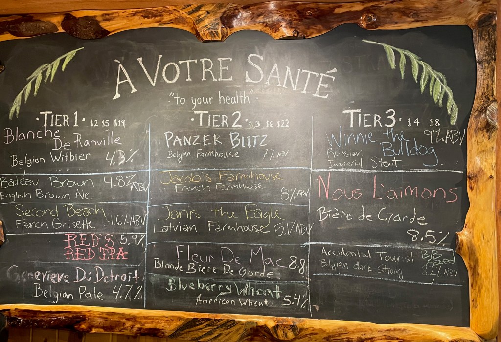 Nearly to Mackinaw City, we knew it would be better to get dinner before heading to the U.P. What better than to stop at a local brewery that would have food trucks? An easy drive from 75, we made our way to Biere de Mac Brew Works, which has plenty of parking and both indoor and outdoor seating. After heading inside to order our beers, we went out into the garden to order from the food trucks (Flat Top Burgers and The Dig’s) and enjoy the beautiful weather.