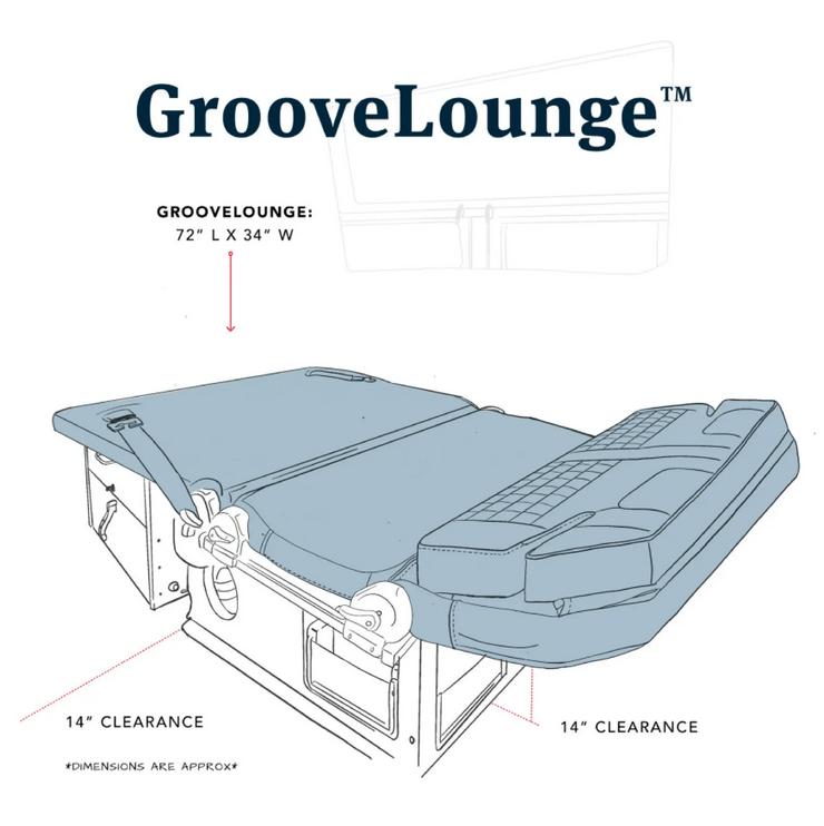 - Sleep mode: Yes, that’s right. The GrooveLounge turns into a twin size bed. Permutations of this mode include slightly elevating either or both sides to provide more of a chaise lounge.