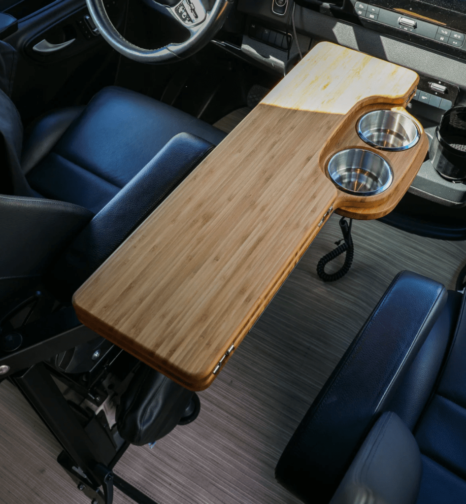 ★Skinny 2.0 Folding Table: To go hand-in-hand with the new mount point, this table is narrow enough to fit in between the driver and passenger seats and then open to provide a full table surface while in place. It can also be used at the GrooveLounge. I like the built-in cup holders and the ability to use it in many more applications than the stock table. ($399 as of May 2024.)