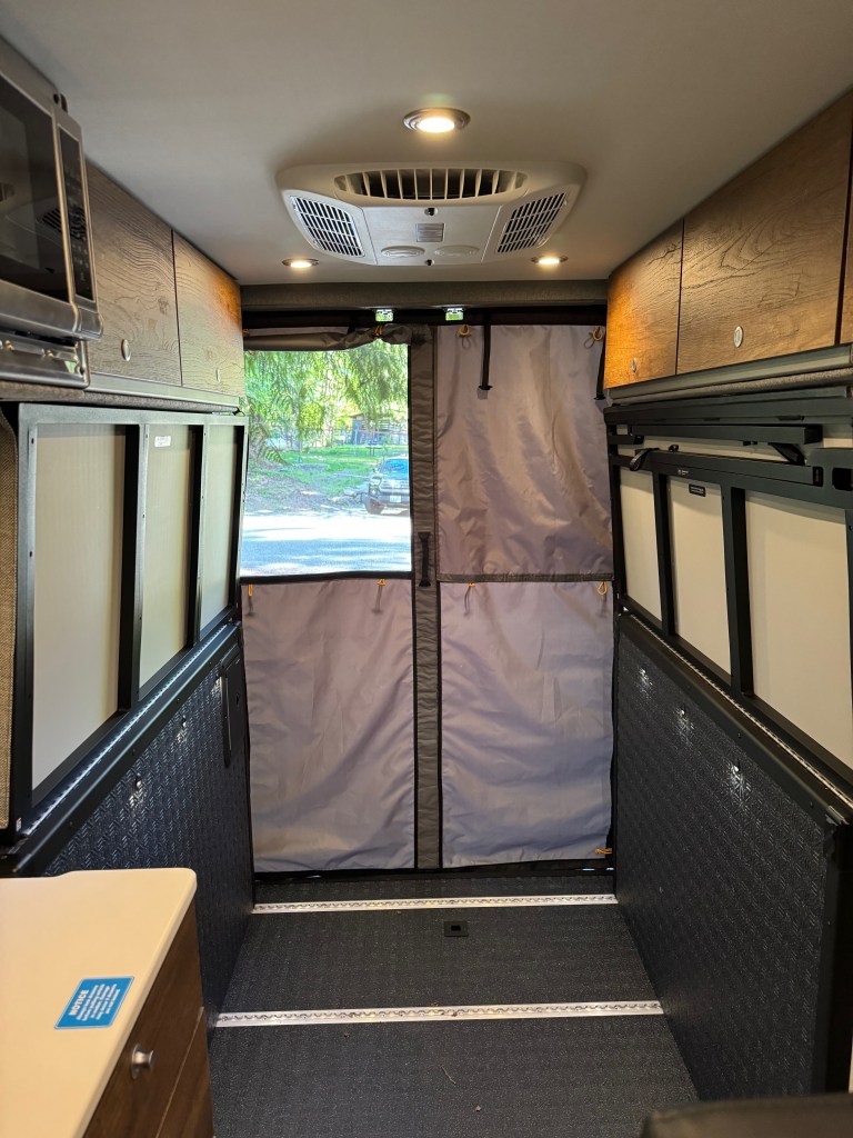 The jury is still out on the built-in bug screens. We love the fact that we can have the back door or the sliding door open for fresh air but not worry about bugs getting in. However, even in this quick analysis, we did notice a few things: namely, the side door bug screen needs some help finding the magnets to stay shut, and the rear door screen has a huge design flaw – a gaping hole cut around each striker. I swear a humming bird could fit through that. We’ll see how much we use them and whether the cost to upgrade to the best-in-class Rolef screens is necessary.