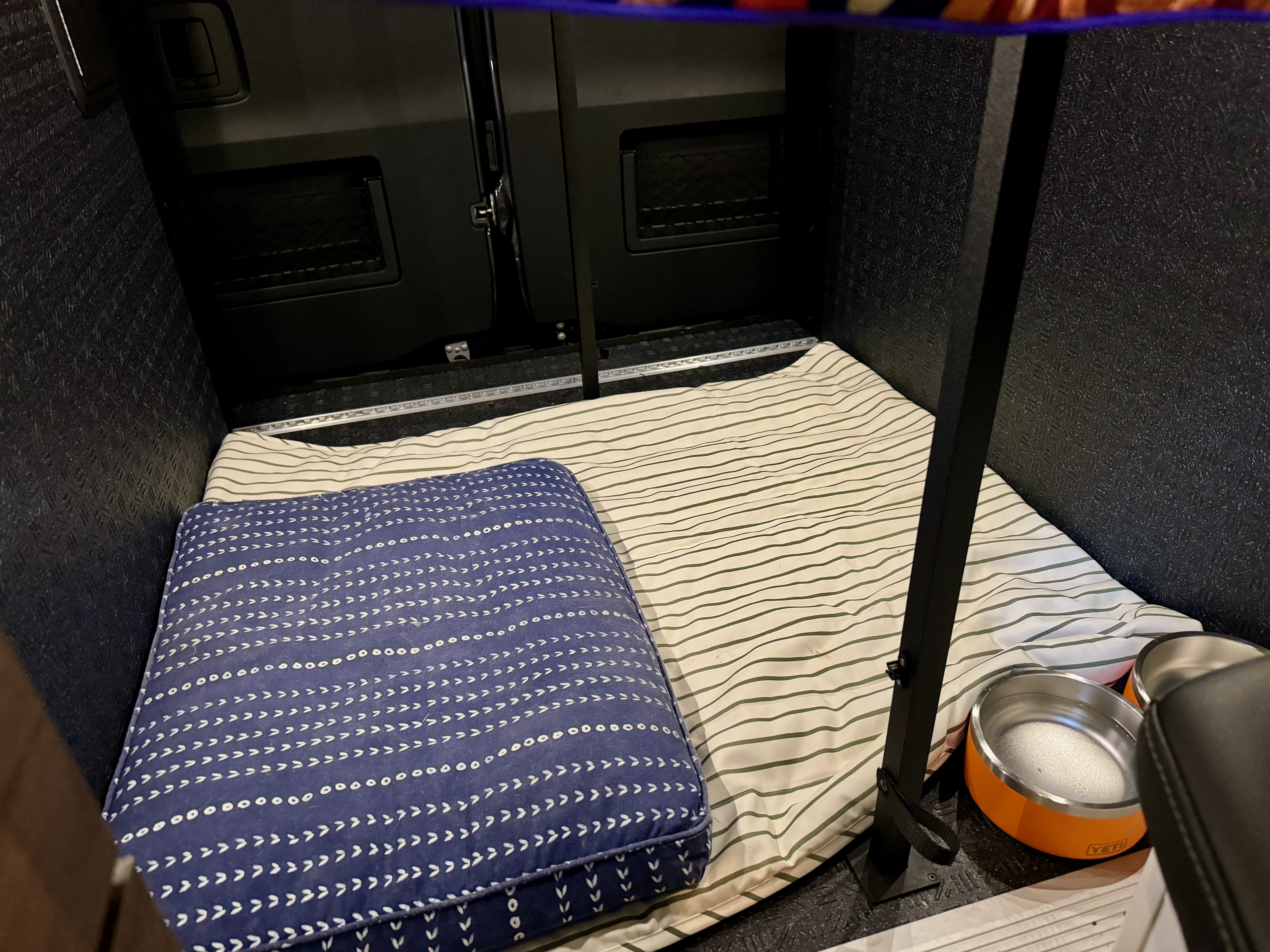 The dogs are going to have a ton of space underneath the bed in the garage, and we’re hoping they make this space their “cave.”