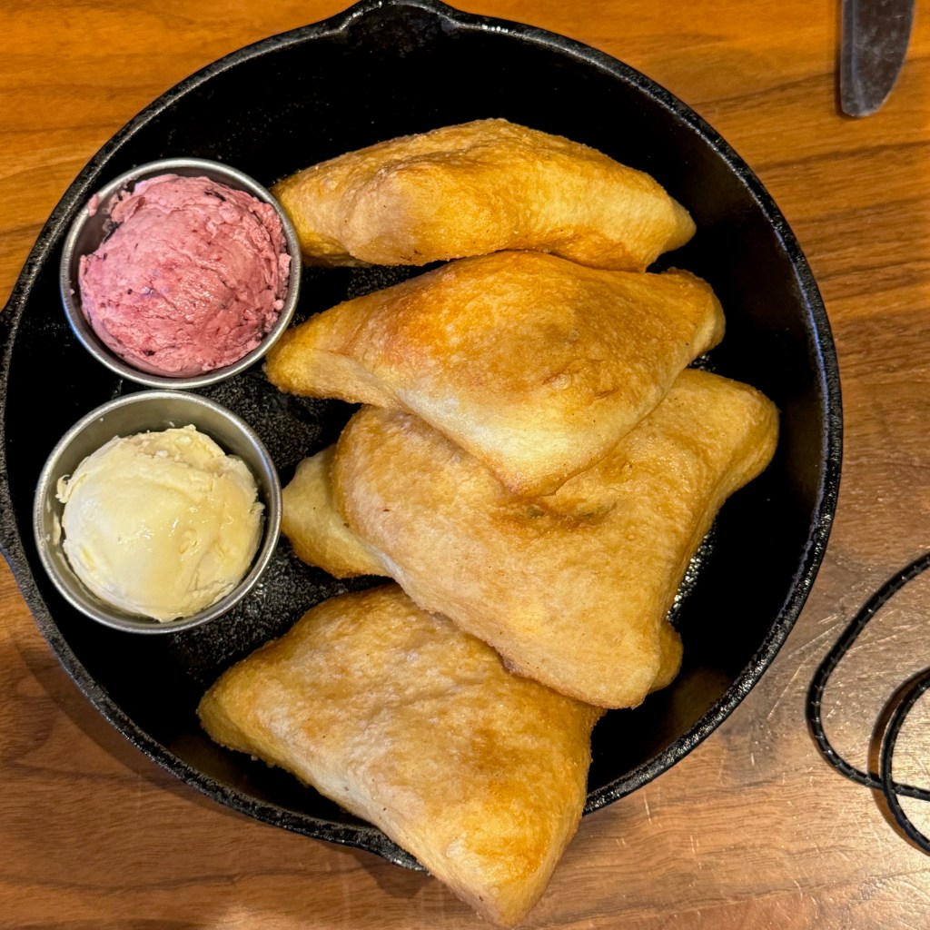 An advantage to staying here was that we didn’t have to figure out dinner because we could just eat at the on-site restaurant, House of Seven Brothers. The fry bread is amazing, and I think we might have to go back just for some more of that! Another advantage was that we could use their restrooms. No showers, but I’ll take the flushing toilet!