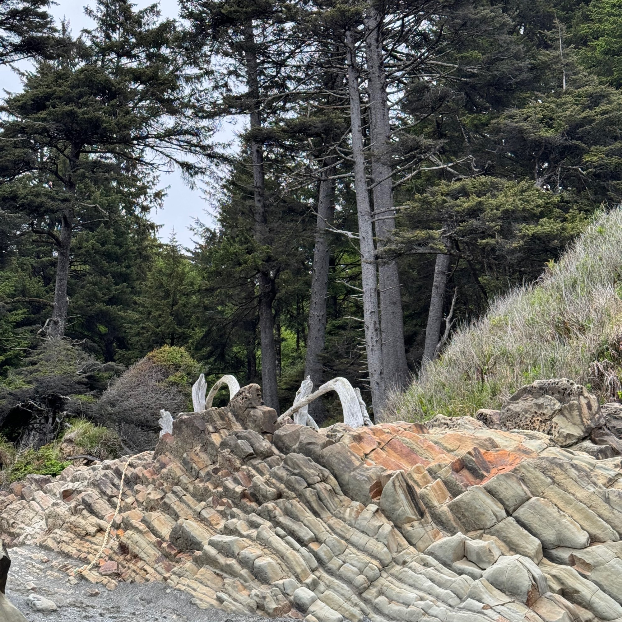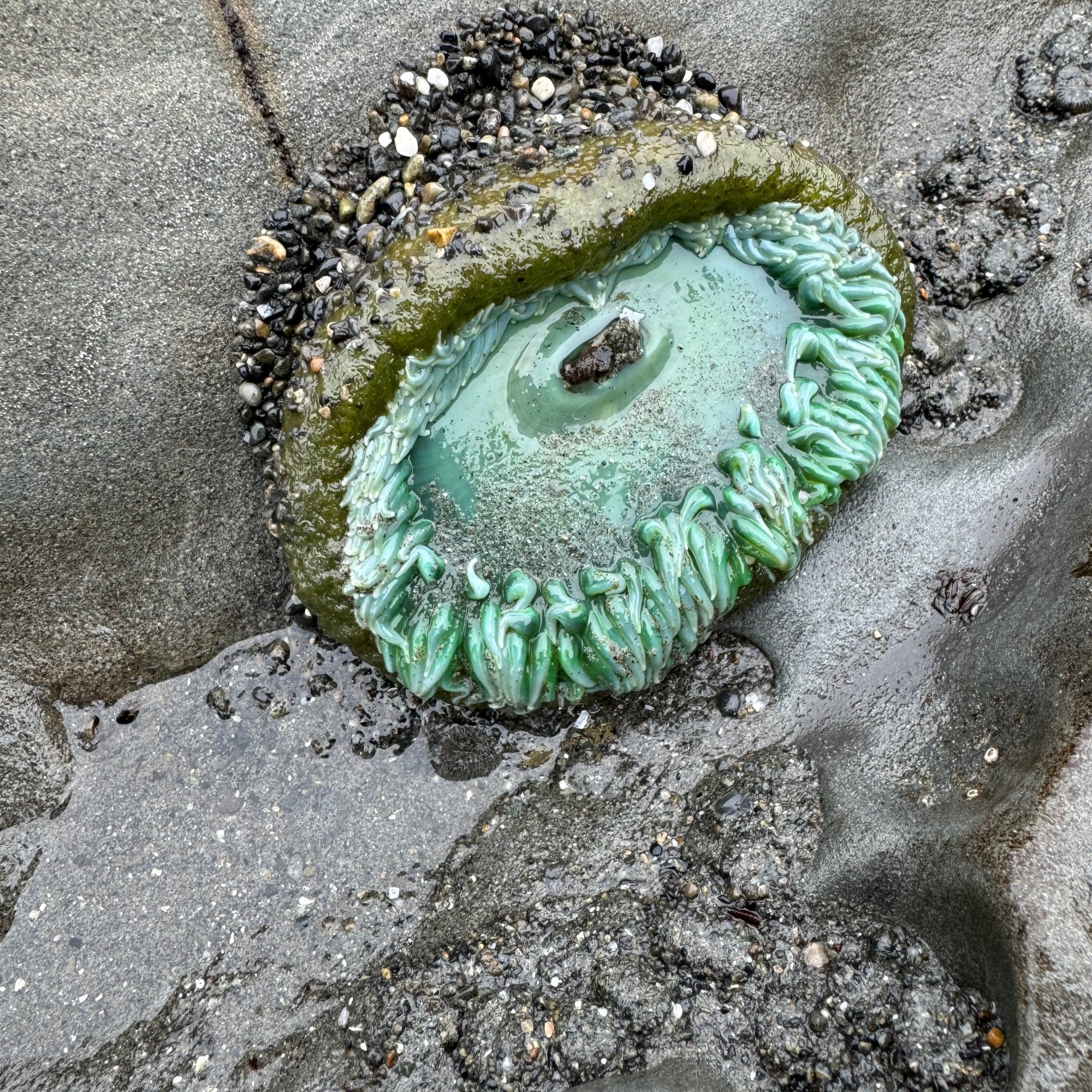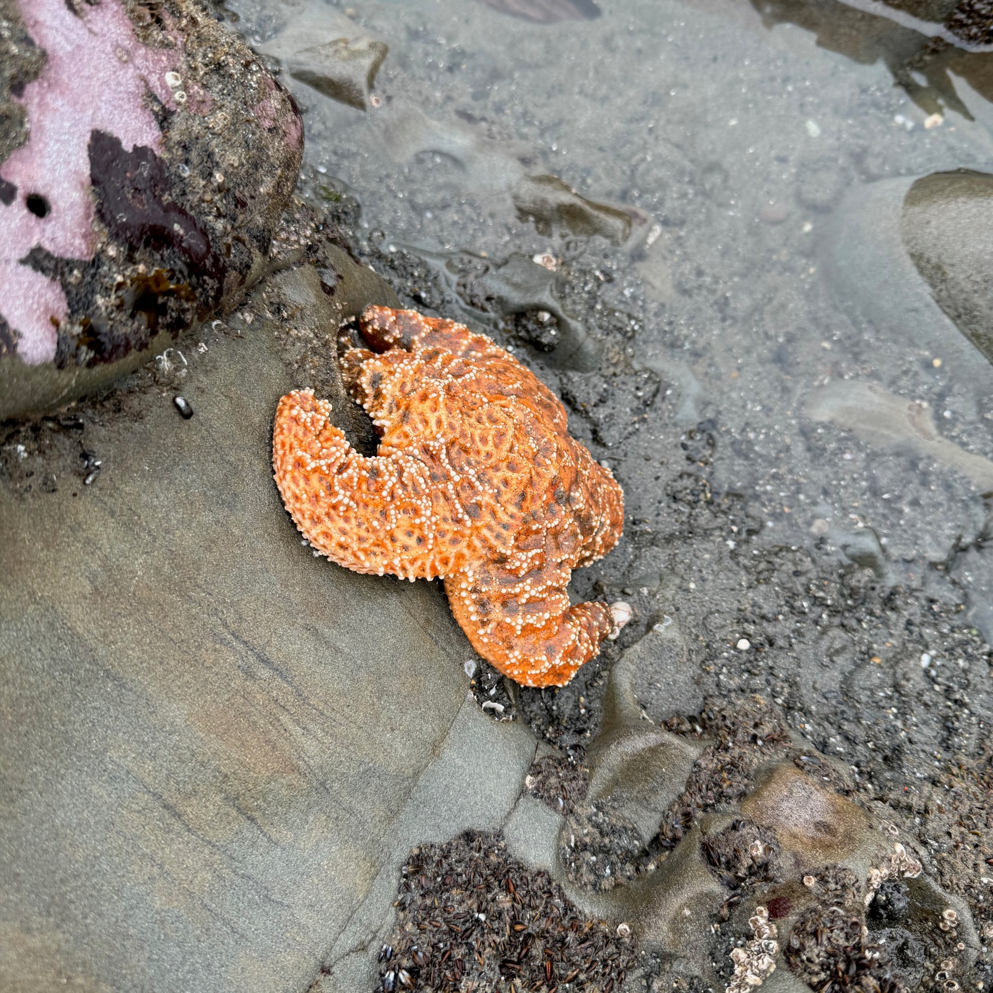 When we debated whether to stay at our dispersed campsite last night, we determined that we would spend the night but get going first thing and get ready at a different location. A quick search later, and we decided the best spot for that would be Beach 4. It was more than perfect: large and relatively empty parking lot and quick access to the beach at low tide! We had some successes tide pooling – seeing a couple of starfish and plenty of sea anemone.