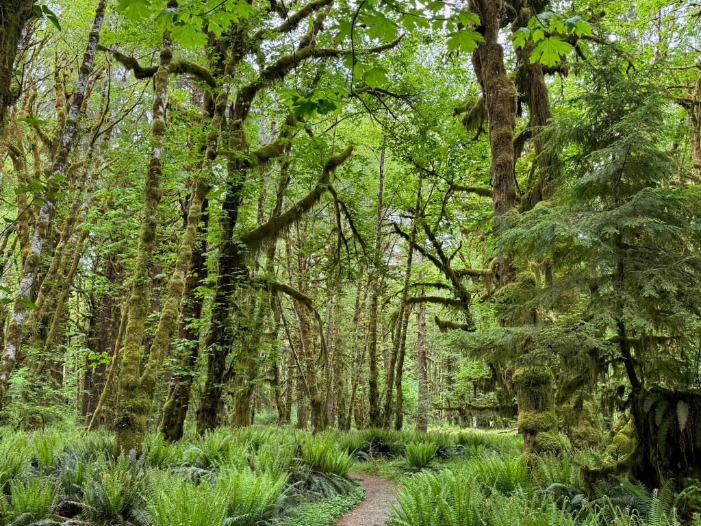 After cleaning up from the beach, it was time to head to Lake Quinault. We debated whether to do the North, South, or both shores, and, when in doubt, decided on both! The North Shore meandered relatively far away from the lake itself but did promise a Ranger Station. Unfortunately, as we were still in shoulder season, it was closed. We decided to park there and do the longer trail for the Kestner Homestead walk.