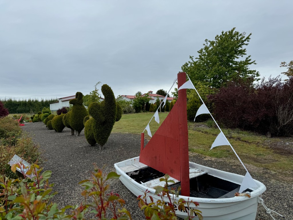 Westport Winery has beautiful grounds and gardens that are open to the public (and there may be a geocache or two as well), and we opted for a little exploration of the gardens before hitting the road. Unfortunately, our schedule did not permit us a visit to the International Mermaid Museum.