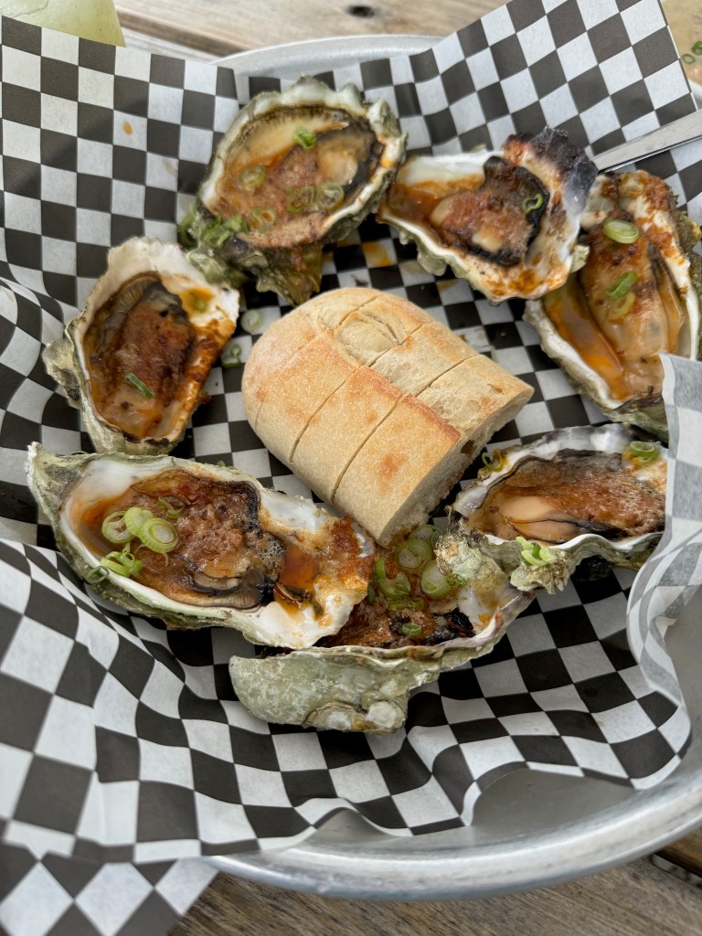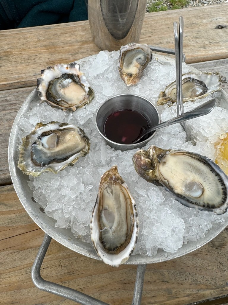 On our radar but not planned, we crossed our fingers for walk-in availability at at Hama Hama Oyster Saloon (as there were no same day reservations available). We lucked into it being a day they were open – Friday – and likely due to the time of year – had no wait. Although reservations secure a table in one of the A-frame shelters, even the walk-in tables are covered. They also each have their own propane heater, which was much appreciated on this blustery day. The food was delicious!